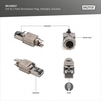 Digitus Cat.8.1 Field Termination Plug, shielded, Tool free, Black