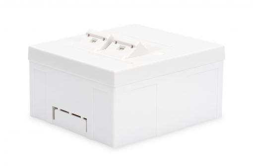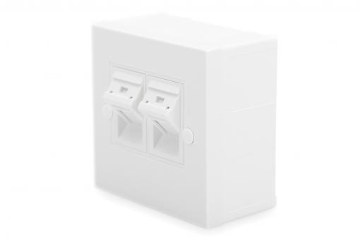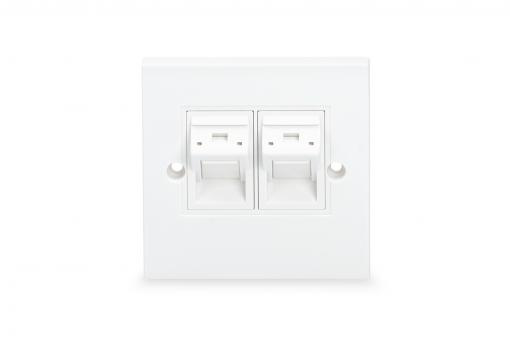 DIGITUS čelní deska pro Keystone Jacks, 2x protiprachový kryt RJ45, 86x86mm + střední deska, čistá bílá, britský typ