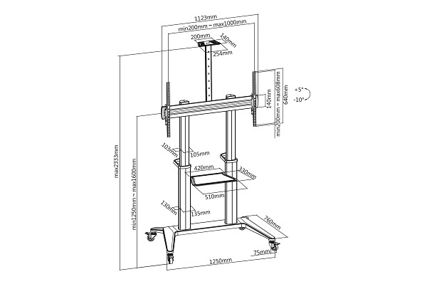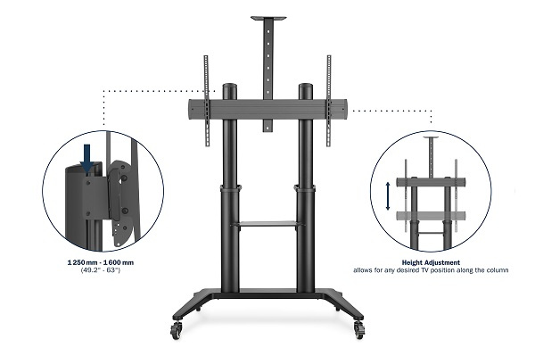 DIGITUS Collaboration Trolley / TV Presentation Cart , 70-120" 140 kg max., černý
