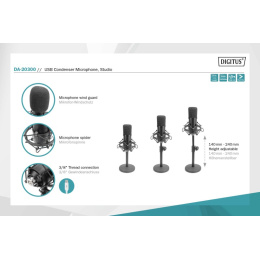 DIGITUS DA-20300 USB Kondenzátorový Mikrofon, Studiový