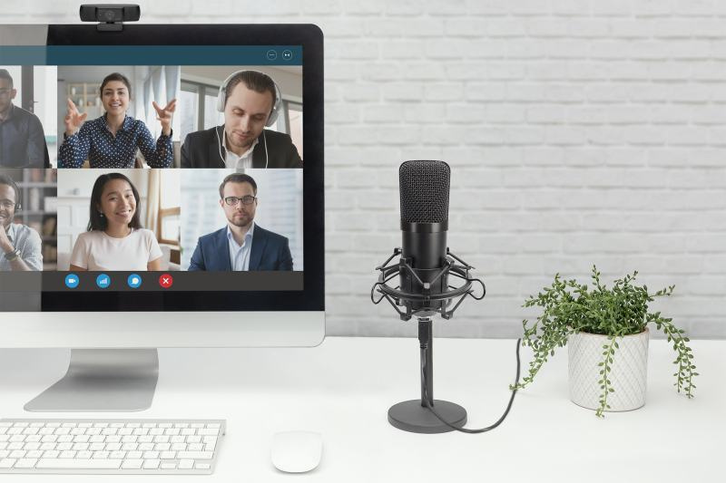 USB kondenzátorový mikrofon s 1,5 m USB kabelem. Ideální pro online schůzky, podcasty, studia a živé vysílání.