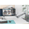 Mikrofonní rameno z kovu s 3/8palcovým závitem. Nastavitelné nůžkové rameno je robustní, snadno se nastavuje a je vybaveno stabilní stolní svorkou. Ramena s dvojitou výztuhou nabízejí dodatečnou pevnost.