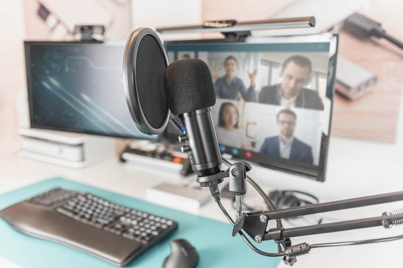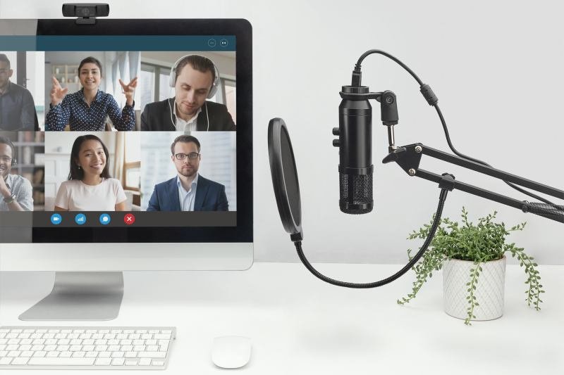 USB kondenzátorový mikrofon s 1,5m USB kabelem. Ideální pro online schůzky, podcasty, studia a živé vysílání.