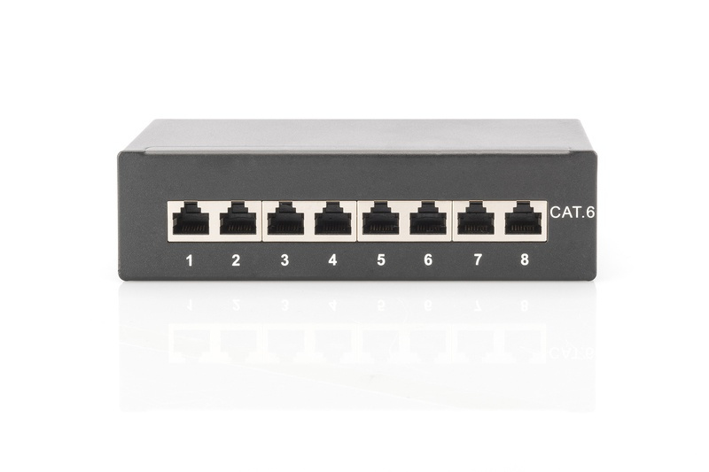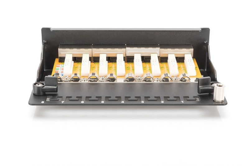 Digitus Desktop CAT 6 Patch Panel, stíněný Class E, 8-port RJ45, 8P8C, LSA, černý, 482x44x109