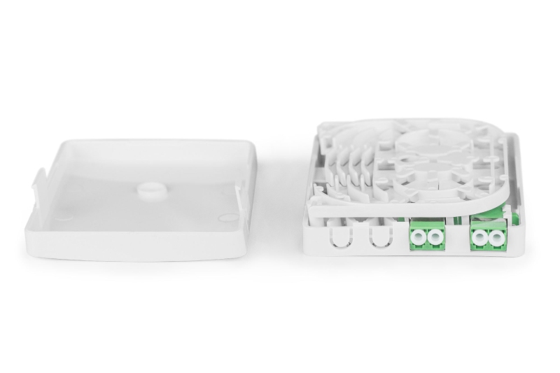Nástěnná zásuvka Fiber je navržena pro použití jako optická telekomunikační zásuvka. Jedná se o ultrakompaktní kryt pro správu až 4 vláken v objektu a lze jej snadno namontovat na stěnu a poskytnout tak přípojný bod až pro 4 koncová zařízení. Je předem smontován s 2 x LC/APC Duplex spojkami a nabízí vstupní body na zadní, spodní a horní straně pro flexibilní kabelové vstupy podle požadavku. Efektivně spojuje možnosti spojování vláken, zakončení, skladování a spojování na minimálním prostoru. Také otvory pro šrouby na zadní straně umožňují snadnou instalaci a umístění, přičemž výstup je v rovině se stěnou.