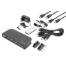 DIGITUS® 2-Port KVM Switch je vysoce výkonný HDMI-KVM přepínač. Směruje video s vysokým rozlišením (ve více rozlišeních až do 4kx2k@60Hz) a zvuk z kteréhokoli z několika zdrojů do zobrazovacích jednotek. Tento přepínač HDMI-KVM má nejen funkci přepínání stisknutím tlačítka, ale má také inteligentní funkci a také funkci připojitelnou za provozu.