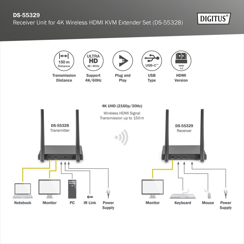 DIGITUS DS-55329 Přídavná jednotka 4K Wireless HDMI Receiver (RX) pro DS-55328