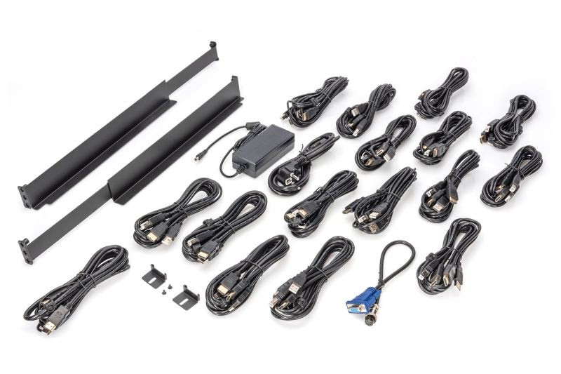Modularizovaná HD LCD TFT konzole, 8 portů VGA s 8 porty VGA KVM, americká klávesnice, RAL 9005 černá