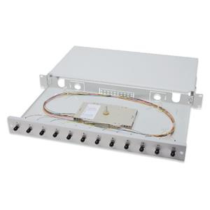 Fiber Optic Sliding Splice Box, 1U, Equipped 12x ST, incl. M 25 Screw, Splice Cassette Color Pigtails OM3, Adapter
