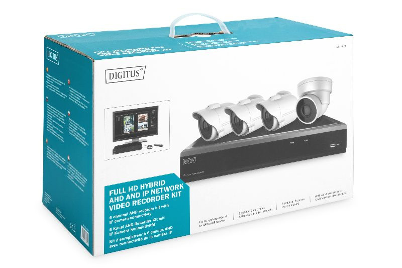DIGITUS DN-16121 je 6kanálový digitální videorekordér se 4 analogovými HD kamerami pro venkovní použití a dvěma dalšími připojeními pro IP kamery v rozlišení Full HD. Sada vám nabízí možnost sledovat několik oblastí vašeho domu nebo firmy a vyměnit stávající analogové systémy za prémiové full HD kamery, aniž byste museli vyměňovat stávající kabeláž. Kromě toho mohou být do systému integrovány 2 IP kamery s rozlišením Full HD, takže kromě klasického analogového monitorování mohou být k systému připojeny například i IP kamery umístěné v interiéru. Máte přímý přístup k živým obrazům i fotografiím na rekordéru. prostřednictvím místního rozhraní VGA a/nebo HDMI. Detekce pohybu, plánování nebo ruční fotografie jsou podporovány pro 6kanálové nahrávání v reálném čase. Pro záznam lze do rekordéru nainstalovat pevný disk SATA s až 6 terrabajty. Zálohování obrázků se provádí přes rozhraní USB. Zde jsou podporovány USB klíče a pevné disky. Sada je dodávána včetně kamer. Obsah dodávky zahrnuje tři venkovní kamery s full HD kulkami a venkovní kameru s kopulí full HD. Kamery mají pevnou ohniskovou vzdálenost 3,6 mm, jsou odolné proti povětrnostním vlivům IP66, podporují teplotní rozsah -20 ° C ~ 50 ° C a jsou určeny pro monitorování až 20 m ve dne i v noci prostřednictvím infračervených LED diod. Rekordér lze připojit k místní síti prostřednictvím rozhraní RJ45. Přístup přes aplikaci pro záznamník DIGITUS se dostane, jakmile existuje připojení k internetu k rekordéru.