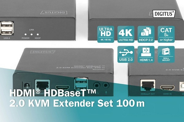 DIGITUS HDMI HDBaseT 2.0 KVM Extender Set, 100 m