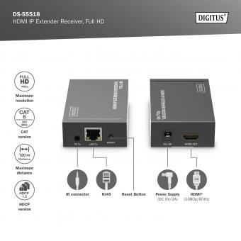 DIGITUS HDMI IP Video Extender, přijímač pro DS-55517