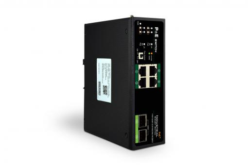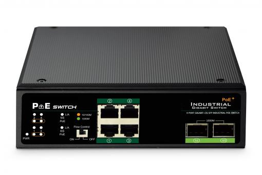 DIGITUS Industrial Gigabit Ethernet PoE+ Switch 4-port PoE + 2-port SFP, 802.3at, DIN rail