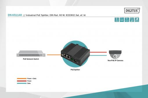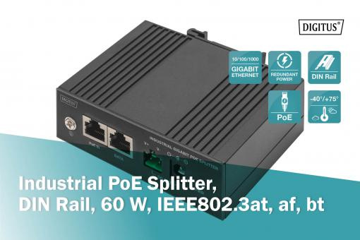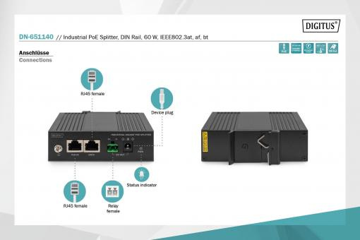 DIGITUS Industrial POE Splitter DIN Rail, 60 W, IEEE802.3at/af