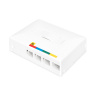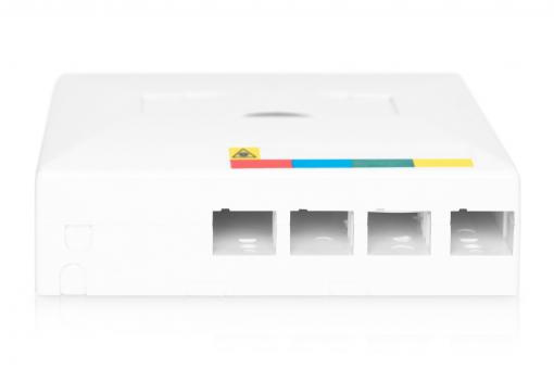Pouzdro FTTX může pojmout až 4 kabely z optických vláken a distribuovat je na 4 koncová zařízení s odpovídajícími spojkami. Pojme 4 x SC Simplex nebo 4 x LC Duplexní spojky (bez příruby). Skříň se skládá z předního panelu, pouzdra s rozšiřitelnou spojovací kazetou a průhledného plastového krytu pro další ochranu spojeného optického kabelu. Krabici lze namontovat na zeď nebo nacvaknout na profilovou lištu (DIN lišta). S ultra kompaktním DIGITUS® FTTX spojte spoje vláken, ukončení, ukládání a připojení v minimálním prostoru.