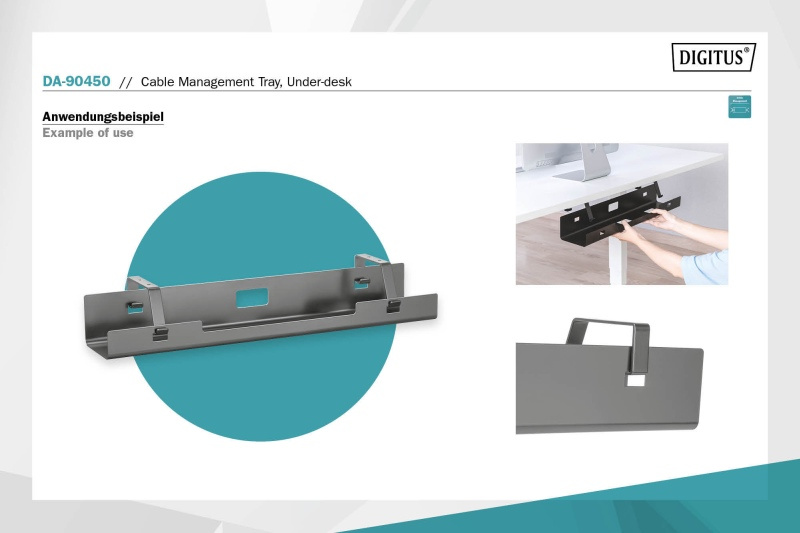 "Tento zásobník na kabely pod stolem poskytuje dostatek úložného prostoru pro kabely, zásuvkové lišty a další věci. Tento výrobek je vyroben z práškově lakované oceli a je robustní a odolný. Otevřená konstrukce usnadňuje vedení a ukládání kabelů a zásuvkových lišt. Kanál lze připevnit k psacímu stolu typu sit/stand i k tradičnímu psacímu stolu. Je zde vytvořen dostatečný prostor pro napájecí kabely, síťové a počítačové kabely. Řešení pro vedení kabelů umožňuje pohyb stolu se sedací/stojící částí a zároveň zabraňuje poškození kabeláže. Elegantní vzhled se dokonale hodí k čistému, otevřenému designu vašeho pracoviště. "