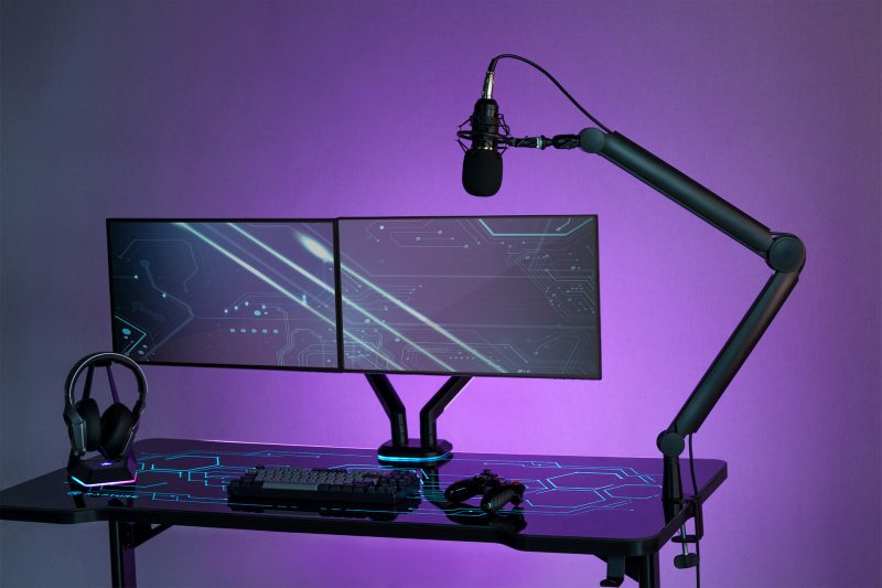 Stolní svorka mikrofonního ramene a vedení kabelu