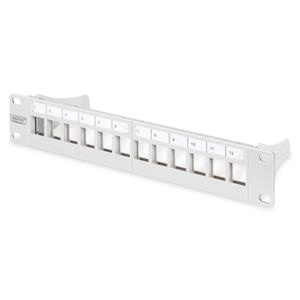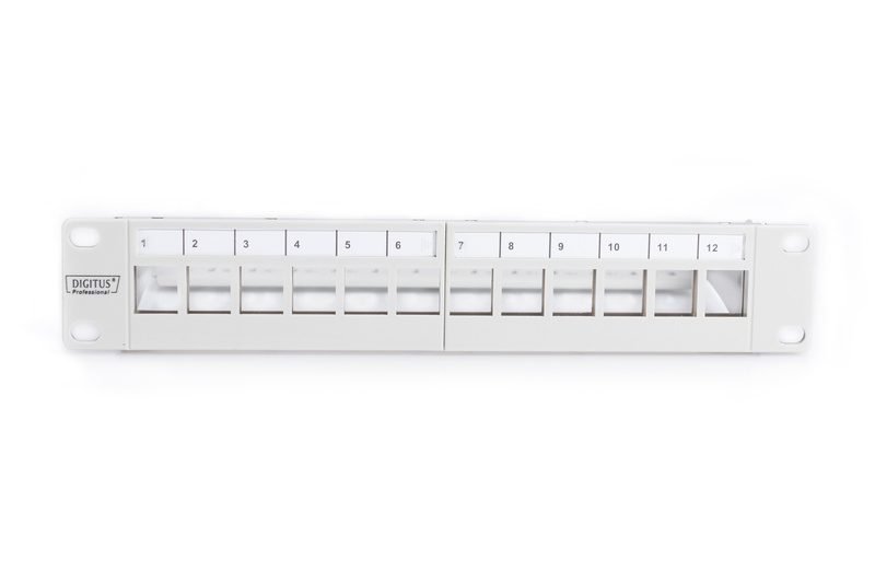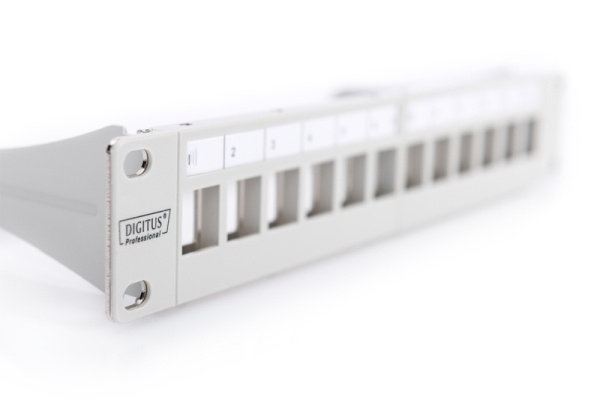 DIGITUS Modulární propojovací panel, stíněný, 12 portů, 1U, 254 mm (10 "), montáž do stojanu, šedá RAL 7035