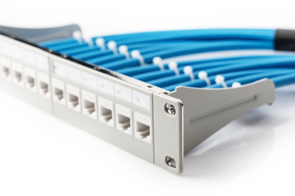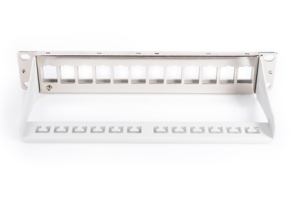 Modulární propojovací panel, stíněný, 12 portů, prázdný, 1U, 254 mm (10 "), montáž do stojanu, šedá RAL 7035