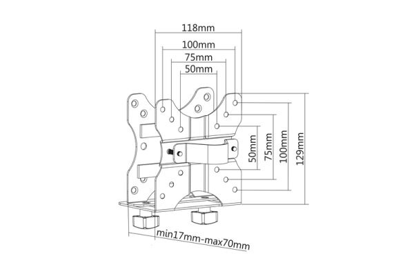 Multifunkční držák stolního počítače pro stolní svorky nebo mezi držáky VESA, VESA 75x75, 100x100