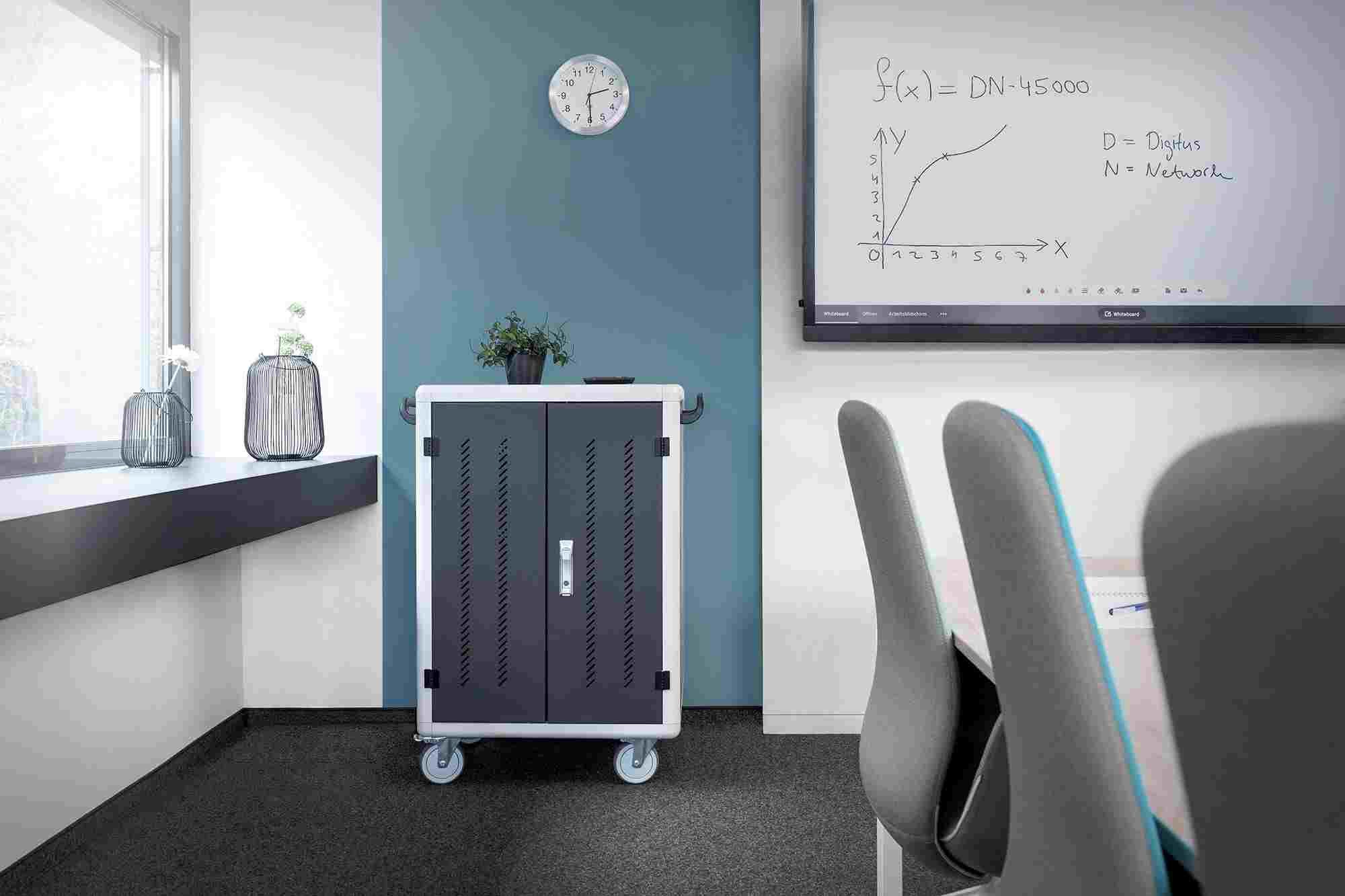 Digitus Nabíjecí vozík pro notebooky a tablety, 30 nabíjecích základen, vhodné až pro 15,6 " zařízení vč. USB, PDU, ventilá