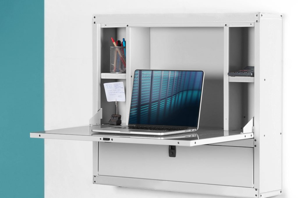 Nástěnná skříň je ideální pro údržbářské pracovní prostory, které se často nepoužívají, a proto je třeba je do místnosti integrovat nenápadně.