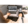 Stůl pro notebook vám umožní pracovat odkudkoli – maximální flexibilita. Nabízí podložku pod myš i stojánek na smartphone. Držák na spodní straně zabraňuje sklouznutí notebooku i při práci v nakloněné poloze. Měkké vycpávky na spodní straně poskytují pohodlnou a stabilní podporu.