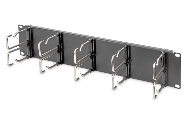 Jasné a úhledné vedení kabelů je jedním z nejdůležitějších aspektů efektivní konfigurace rozvaděče. Panel pro správu kabelů DIGITUS® poskytuje 10 stabilních ocelových konzol pro efektivní použití i při manipulaci s větším množstvím kabelů. Barvení se provádí práškovým nástřikem v barvách světle šedá (RAL 7035) nebo černá Jet (RAL 9005). Ocelové konzoly lze na požádání demontovat, aby se panel flexibilně přizpůsobil různým aplikačním scénářům.