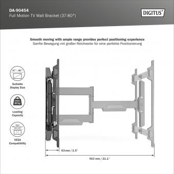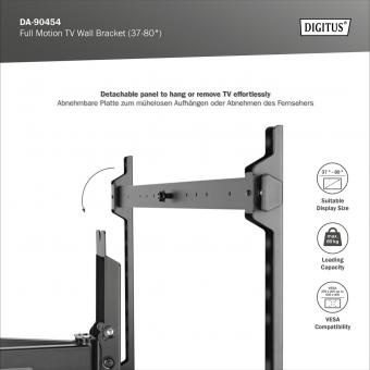 DIGITUS Plně pohyblivý TV nástěnný držák 37-80", 60 kg zatížení max., VESA: 200x100, 200x200, 300x200, 400x200, 300x300, 400x300