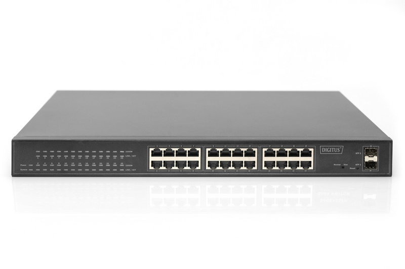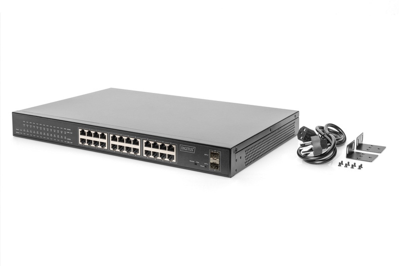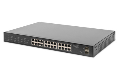 DIGITUS Přepínač Gigabit Ethernet PoE, 24portový PoE + 2 SFP, 380W PoE rozpočet