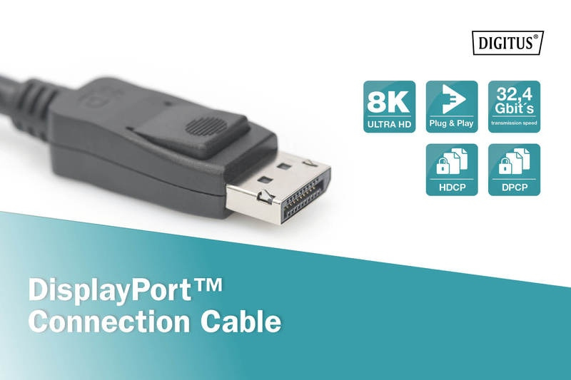 DIGITUS Připojovací kabel DisplayPort, DP M / M, 1,0 m, Ultra HD 8K, verze 1.3 / 1.4, bl