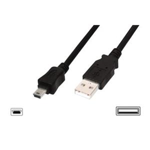 Digitus Připojovací kabel USB 2.0, typ A - mini B (5pin) M/M, 3,0 m, kompatibilní s USB 2.0, bl