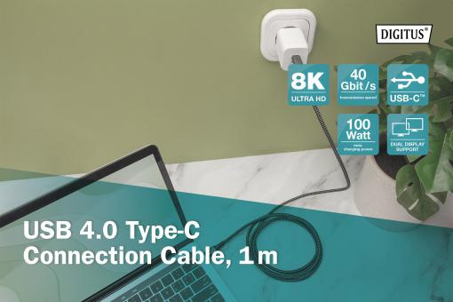 DIGITUS Připojovací kabel USB 4, TypC na TypeC, PP opletení AL-Housing 8K@60Hz, PD3.0, 40Gbits/s, 1m, bl.