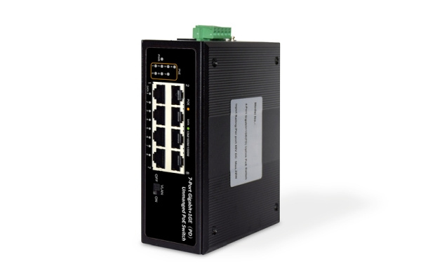 Průmyslový 7portový gigabitový PoE+ switch s 1 x PD-portem