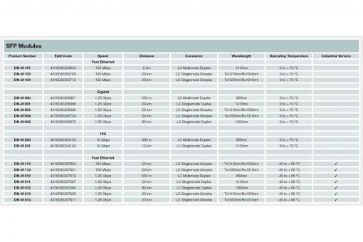 The DIGITUS® mini GBIC (SFP) transceiver modules offer highest quality and reliability. Wether from switch to switch, converter to switch, converter to converter or any else application: The wide product range of DIGITUS® modules makes possible a flexible usage of the fiber technology. The conformity to the MSA (Multi Source Agreement) standard ensures a compatibility to third party manufacturers.