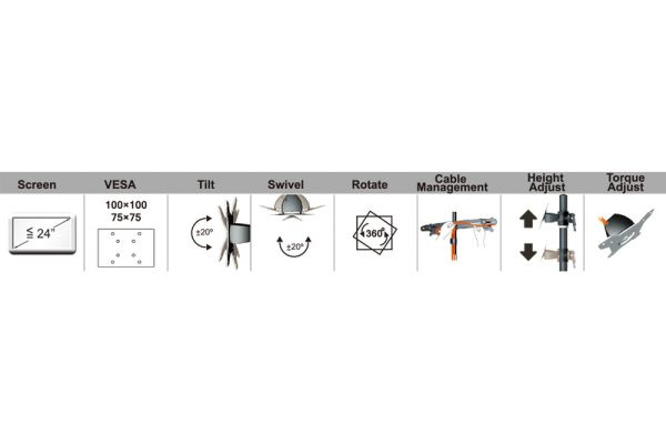 S Twin Monitor Mount můžete mít až čtyři monitory. Rozšíření je kompatibilní s DA-90322. V kombinaci může nést maximální zatížení až 8 kg na rameno.
