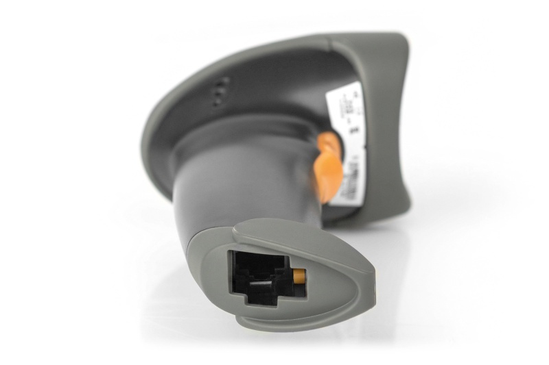DIGITUS Ruční skener čárových kódů 2D, napájený z baterie, kompatibilní s Bluetooth a QR kódem, 200 skenů / s, s držákem