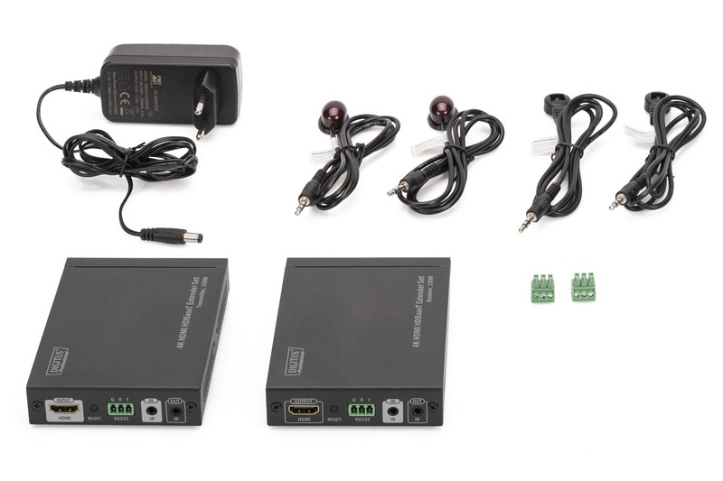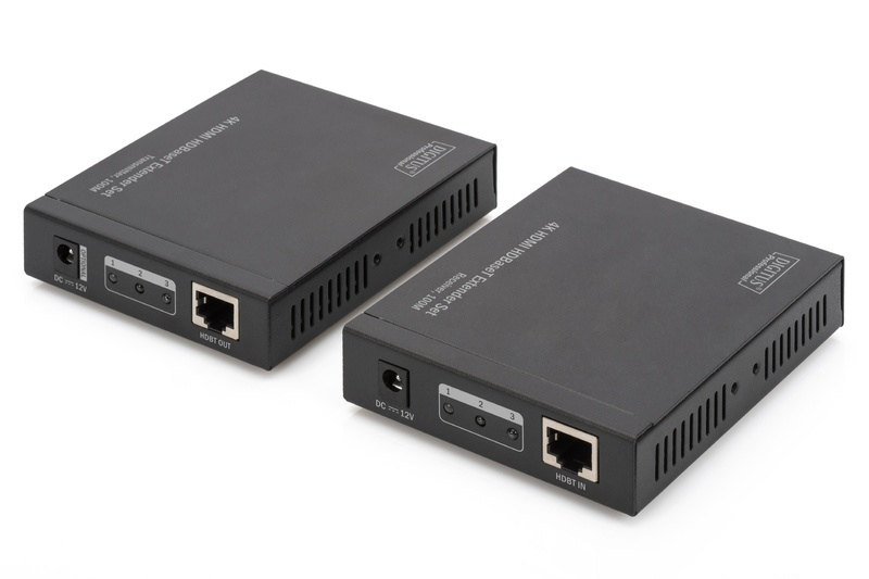 DIGITUS Sada 4K HDMI Extender, HDBaseT, UHD 4K * 2K @ 60 Hz, 100 m po síťovém kabelu (kat. 6, 6a, 7)