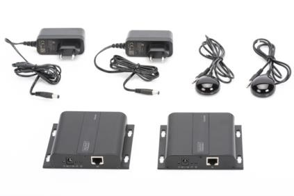 DIGITUS Sada 4K HDMI Extender přes IP, 4K*2K@30 Hz přes síťový kabel (CAT 5 / 5e / 6/7), černá
