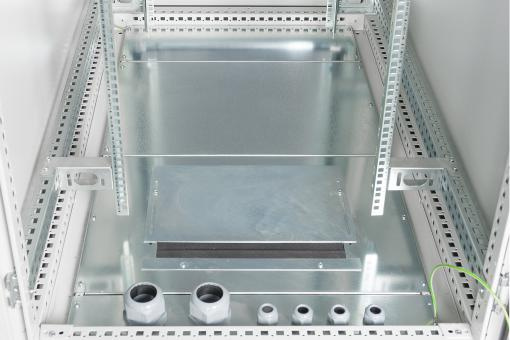Průmyslové skříně 483 mm (19 ") jsou chráněny proti vniknutí prachu a vody v souladu s bezpečnostní úrovní IP55 (IEC EN 60529), aby poskytovaly optimalizované podmínky pro uživatelsky přívětivou instalaci aktivních a pasivních součástí sítě doprovázených úhledným vedením kabelů v barva je tvořena 70-90 µm silným práškovým nátěrem v barvě šedé (RAL 7035) se schopností přilnavosti podle EN ISO 2409: třída 0 až 1. Další provedená 500 hodinová zkouška odolnosti vůči postřiku solí potvrzuje možný rozsah provozních teplot od -25 ° C do +70 ° C. Vnitřní montážní profilové lišty 483 mm (19 ”) (dva páry = 4 kusy) jsou galvanicky pozinkovány a označeny výškovými jednotkami (počítatelné z obou směrů). jsou variabilní v hloubce a jsou spojeny s přídavnými podpůrnými tyčemi pro realizaci rozsáhlých instalací zařízení o délce 483 mm (19 ”). Dále je uvnitř konstrukce otočného profilu s otvory. Každá skříň je vybavena soklem (výška 100 mm), který nabízí aditio prostor pro kabeláž. Základna každé skříňky je vybavena posuvným kabelovým vstupním panelem s gumovým těsněním a pěti kabelovými vstupy PG (4x PG21 + 1x PG48). Rozsáhlé portfolio příslušenství pro správu kabelů, police atd. Pomůže splnit mnoho požadavků při každodenním používání.