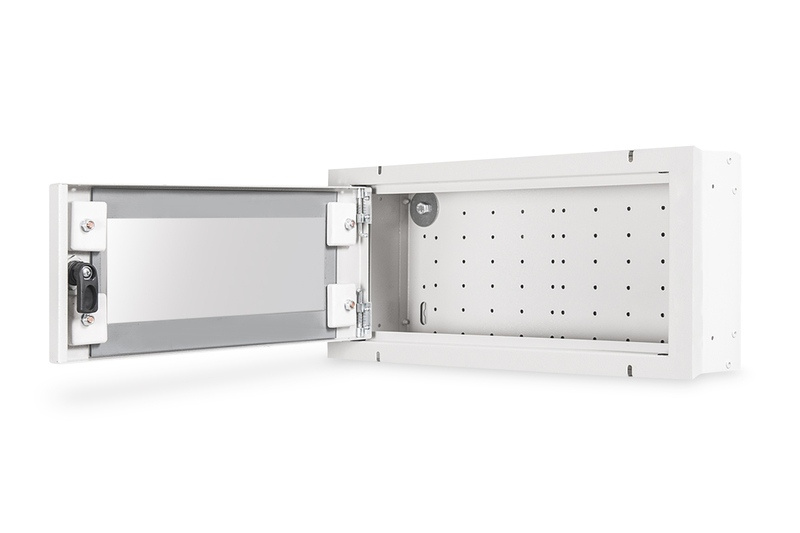 Pomocí nástěnných skříní pro domácí automatizaci můžete snadno uspořádat správu domácnosti. Uvnitř robustního krytu můžete upevnit různé příslušenství a montážní desky, které nabízejí prostor pro aktivní a pasivní síťové komponenty. Tímto způsobem je individualizována např. Kabeláž vašeho WLAN routeru, vašich přepínačů nebo patch panelů. Vedení kabelů se provádí výřezy na horní a spodní straně krytu. Plastové kryty s body zlomu zajišťují optimalizované možnosti uspořádání kabelů. Skříně se dodávají ve verzi pro povrchovou montáž. S volitelnými rámy můžete převést své pouzdro na zapuštěnou verzi.
