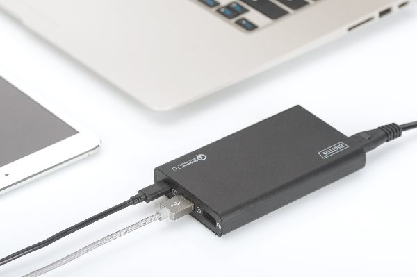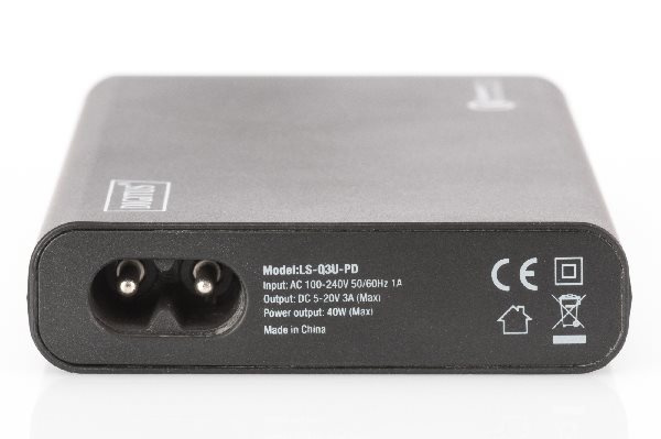 Nabíjecí stanice Universal Travel USB od společnosti Digitus vám nabízí možnost nabíjení všech zařízení (notebook, ultrabook, konvertibilní, tablet, smartphone atd.). Díky třem síťovým připojovacím kabelům (EU, USA, Velká Británie) může být použit ve více než 100 zemích. Má nabíjecí port USB-C (PD 2.0), který umožňuje rychlé a efektivní nabíjení notebooků / ultrabooků, chytrých telefonů a tabletů. Nainstalovány jsou také dva nabíjecí porty USB Qualcomm® QuickCharge ™ 3.0, které lze použít k nabíjení jakéhokoli mobilního zařízení (tablet, chytrý telefon, fotoaparát atd.). Maximální výkon nabíjecí stanice je 40 W. Váš dokonalý společník, ať už v práci nebo doma, doma nebo na cestách. Nabíjecí stanice pro všechno - Digitus Univerzální cestovní nabíjecí stanice USB.