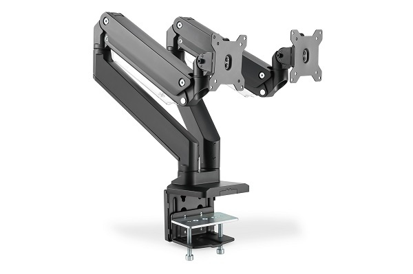 DIGITUS univerzální držák pro dva monitory s plynovou pružinou a svorkou VESA 75x100