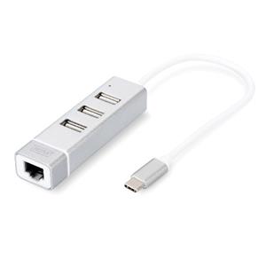 DIGITUS USB 2.0 3-Port Hub & Rychlý Ethernet LAN Adaptér s konektorem typu C