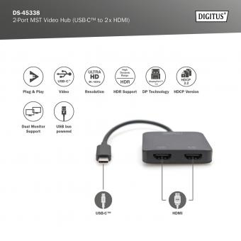 DIGITUS USB-C - 2x HDMI MST Video Hub DP 1.4, HDMI 2.0, 4K/60Hz