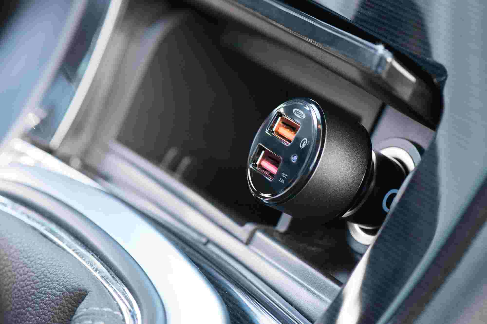 Duální port (Rychlé nabíjení ™ 3.0 + inteligentní nabíjení) - Rychle a efektivně nabíjejte dvě mobilní zařízení (například smartphony, tablety, power banky, reproduktory, fotoaparáty atd.) Současně ve vozidle