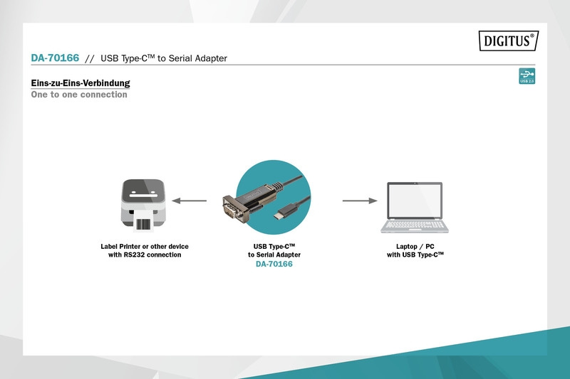 Sériový adaptér DIGITUS® USB Type-C ™ je praktickým řešením pro sériové připojení. Sériová rozhraní RS232 již na novém hardwaru nejsou k dispozici, takže sériový adaptér DIGITUS® USB Type-C ™ umožňuje výměnu dat mezi portem USB Type-C ™ počítače a periferními zařízeními se sériovými rozhraními (port COM, RS232). Patří sem například meteorologické stanice, senzory, řídicí systémy strojů, set-top boxy, herní konzole, PDA, skenery, modemy, adaptéry ISDN a mnoho dalších periferních zařízení. Sériový adaptér USB Type-C ™ je sestupně kompatibilní s USB 1.1 a umožňuje přizpůsobitelné přenosové rychlosti mezi 75 a 128 000 bitů za sekundu. Přizpůsobitelná čipová sada FTDI je kompatibilní se všemi běžnými operačními systémy a také podporuje správu napájení a vzdálené probuzení. Není nutné samostatné napájení, protože zařízení je napájeno prostřednictvím připojení USB.
