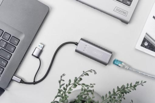 DIGITUS USB Type-C™ Gigabit Ethernet Adapter 2.5G, USB-C™ + USB A (USB3.1/3.0)