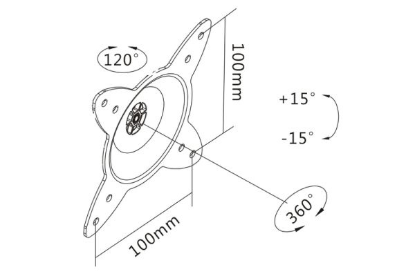 Digitus VESA držák LCD/LED na zeď do 69cm (27") +-15o otočný, 360o otočný, VESA 75x75, 100x100, 15kg