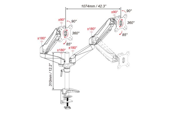 Digitus VESA dvojitý svorkový stolní stojan, 69cm (27") plně flexibilní, 8kg